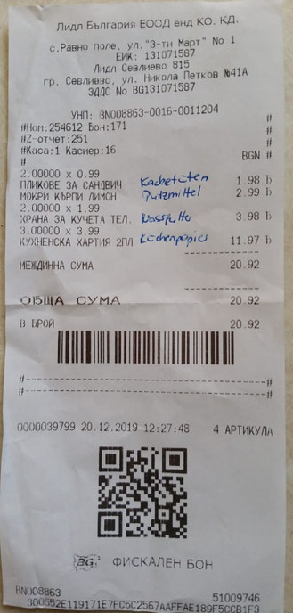 Einkäufe vom 20. Dezember 2019