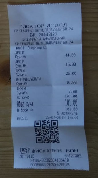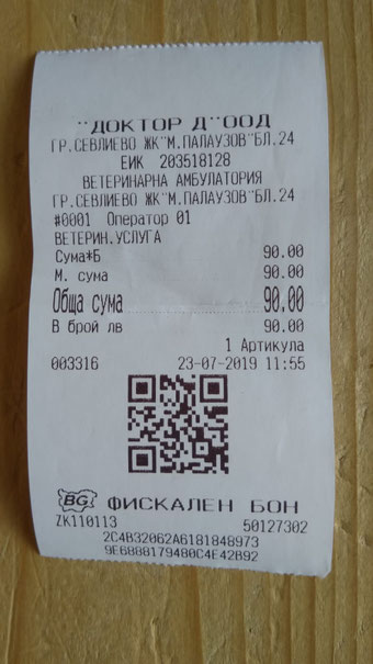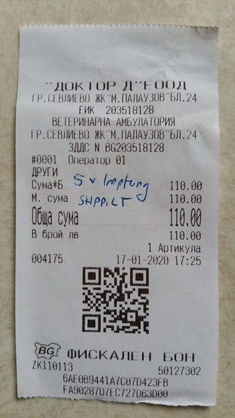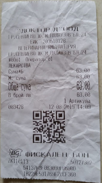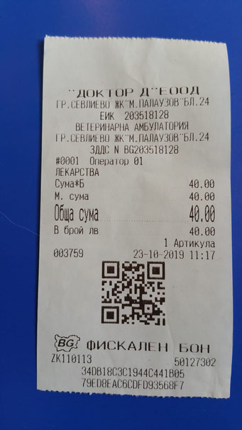 Quittung über Spot on und Entwurmung
