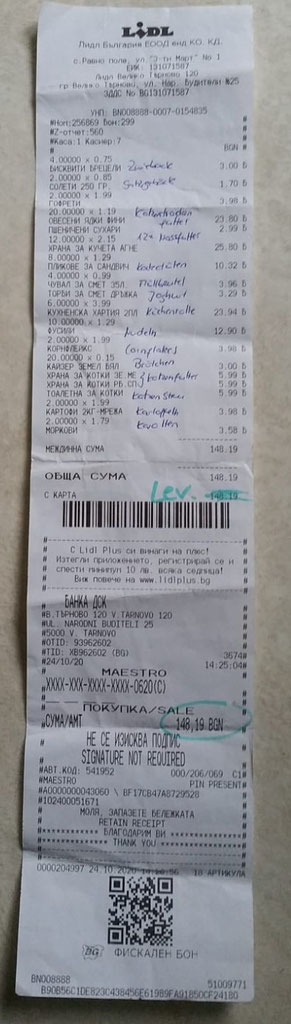 Einkauf vom 24. Oktober 2020