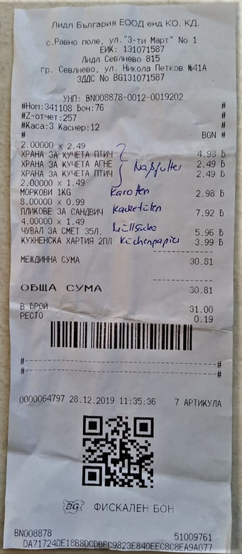 Einkäufe vom 28. Dezember 2019