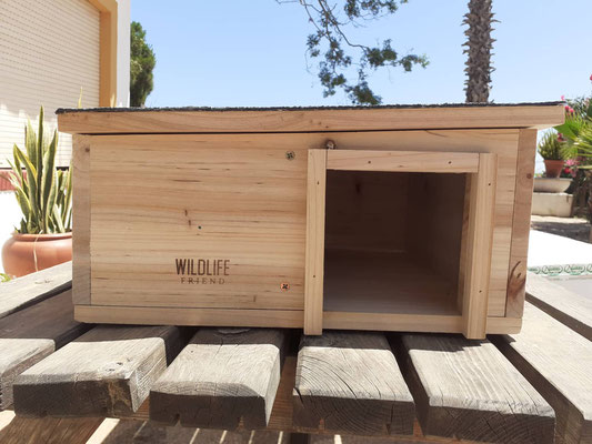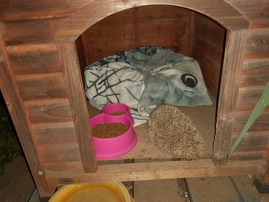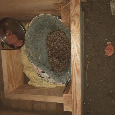 Um den Wildtieren auf dem Außengelände zwischen Hühnern, Hähnen, Katzen und Hasen sicheren Zugang zu schmackhaftem Katzenfutter zu geben, benötigt die Rettungsstation dringend zwei bis drei weitere Igelhäuser.