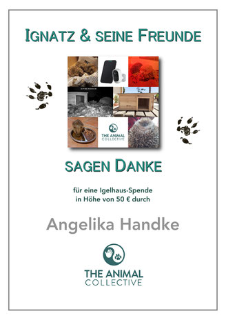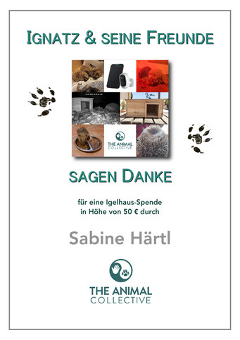 Ich freue mich sehr, dass mit zwei weiteren Direktspenden sowie einem Spendeneinkauf die Anschaffung von drei Igelhäusern sowie das Futter für Igel Ignatz und seine elf Freunde für diesen und den