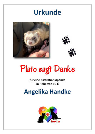 Nach Frettchen Xanthippe hat nun auch Plato hat seine erste Kastrationspatin gefunden.